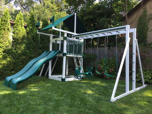 Each and every playset you buy from Chicagolands premier playset company is manufactured with either non-splintering vinyl, or constructed from 100% Pacific Solid Cedar with Interlocking Multi-Beam Joint Construction. Our playsets come with:
